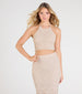 Enjoy stylish bliss in this crochet top on your next getaway or weekend outing! The top offers a flattering halter neckline with a spaghetti strap tie and a fitted crop hem. Complete the look with the matching midi skirt.