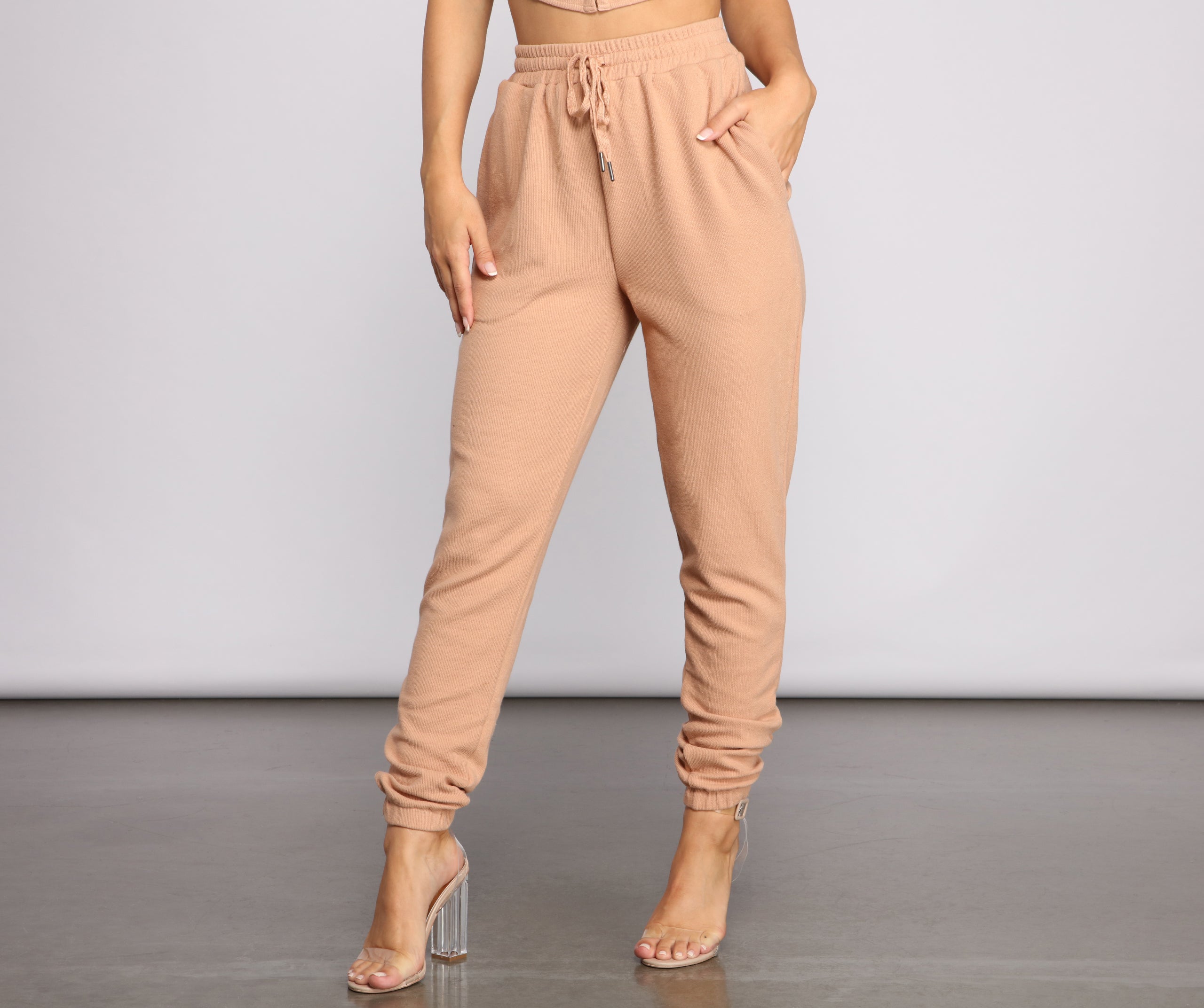 Casually slay your everyday 'fit in these trendy ribbed knit joggers! They feature a high rise banded waist with a tie front detail and a relaxed fit with a jogger hem. Pair these pants with a dainty layered necklace for a subtle glam vibe.