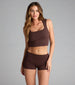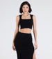 Enter your elevated era with this chic staple ribbed knit tank top perf for everyday styling. Designed with a sleeveless square neckline and fitted cropped hem. pair with the matching midi skirt for a seamless look.