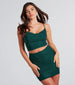 Slay the holidays in this glitter rhinestone crop top perfect for decking the halls into the new year! It features a cowl neckline. spaghetti straps. and a fitted crop hem. Complete the look with the matching bottoms.