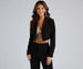 Own your look with a blazer like the major boss babe you are! The blazer features a collared neckline. a multi-button front closure. lightly padded shoulders. long sleeves. and a cropped hem. The blazer is composed of a lined crepe fabric that offers a form hugging fit with a moderate stretch. Complete look with the matching pants and mules.Â