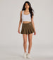 Perfect for any occasion. this mini denim skort combines fashion and practicality effortlessly. The high-rise waist and zipper detailing add a touch of edge. while the pleated mini-length hem on twill denim fabric brings a charming allure. Complete the look with the matching shacket.