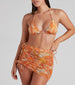 Make sure to pack this retro-fab mini skirt for your next desert getaway! It features a high-rise waist. cinched detailing down one side with an adjustable drawstring. and a short. form-hugging fit. The sheer mesh fabric features an all-over paisley print pattern. Style this mini skirt over the matching bikini with cat-eye sunglasses.