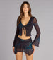 Go bold or go home. This zebra print mesh crop top serves major wild streak with its tie-front detail and sheer long sleeves—perfect for layering or making your next 'fit pop. Style with the matching mini skort.