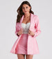 You'll look so fab in this sleek and trendy faux leather blazer! It features a lapel collar. shoulder pads for structure. long sleeves with button accents. a single button-front closure. faux front pockets. and a long-line fitted silhouette. The lined faux leather fabric offers a minimal amount of stretch. Complete the look with the matching skirt for a posh style!Â