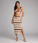 POV: you just found your new fave beach-to-brunch vibe. This striped crochet midi skirt serves laid-back heat with a form-hugging fit and thigh-high slit made for turning heads from sunrise to sunset.