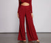 Keep on trend with cute high waist pants that keep your look on point. The pants feature a high rise waist. side pockets. and a flared wide leg. The pants are composed of a soft to the touch modal fabric that offers a relaxed fit with a moderate stretch. Complete look with the matching crop top.Â