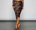 Keep your outfit trendy and on point with this marble-printed mesh midi skirt! It features a high waist. side ruching. and a mid-length. curve-hugging silhouette. Style this skirt with the matching crop top and strappy heels.