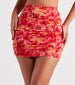 You'll be ready for your vacay getaway with this bold floral mini skirt. It features a high-rise waist. dual vertical seams down the front. all-over ruching. a mini-length hem. and a curve-hugging silhouette. The lined mesh fabric features a tropical floral print pattern. Style with the matching bustier and a pair of mules!
