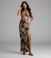 Get ready for your sunny destination with this stylish tropical maxi dress! Featuring a sweetheart neckline with a square insert. a flirty cutout bodice. and a high side slit. this dress is perfect for showing off your tropical vibes.