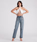 Bring the 90s back in glamorous fashion! These denim jeans feature a flattering high-rise waist. front rhinestone beading along the pockets. and a straight-leg silhouette. The jeans are composed of vintage-inspired medium-wash denim fabric with minimal stretch. Style with a trendy crop top and booties to complete the look!