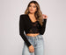 Layer on this trendy cropped blazer for a major chic moment! It features shoulder pads. long fitted sleeves. an open front. and a cropped. tapered fit. Style this blazer over a bodysuit and high waist denim to elevate a casual outfit.