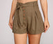 These summer-ready linen shorts will give your look a classic and chic vibe! They feature a high-rise waist. a tie-front belt. a button-down front. and a relaxed fit. Style these shorts with a basic bodysuit and cute mules.
