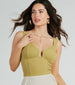Showcase a little flirtiness in this crop top perfect for dates to dinner with the girls! It features a sleeveless sweetheart neckline with a wired notch cutout. tank shoulder straps. and a fitted crop hem on texture knit fabric. Complete the look in sleek high-rise pants and heels!