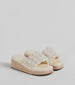 From beach vacations to sunset cocktails. these wedge sandals are perfect for summer fun! Featuring a square toe and a unique woven puff strap. you'll stand out in style. The espadrille platform wedge sole and padded faux leather footbed add comfort and elevated trendiness. Complete the look with a chic purse.
