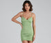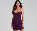 This sultry ruched mini dress would be a stylish choice for your next night out. It features a sleeveless sweetheart neckline with padded cups. spaghetti straps. ruching at the bust and on the sides. and a mini. bodycon silhouette. Complete the look with hoop earrings.