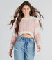 Raise a toast of hot cocoa in this chenille sweater perfect for keeping you cute and cozy all season! It features long sleeves with ribbed cuffs. a crew neckline. a striped pattern. and a trendy cropped hem on ultra-soft chenille knit fabric. Complete the look in high-rise jeans.