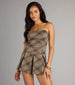Plaid but make it playful—this strapless romper brings preppy vibes with a fitted bodice and flirty pleated hem. Perfect for when you want to keep it cute but still cool-girl.
