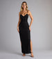 Made for your red-carpet arrival. the Adaline glitter mesh formal dress shimmers with all-over rhinestone detailing and a sleek. curve-skimming silhouette. The sultry neckline and dual side slits add just the right amount of allure when the night calls for all eyes on you.