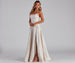 Create an enchanting homecoming or prom look that radiates elegance and grace in our Adalyn brocade dress! She features a classic scoop neckline. padded cups. spaghetti straps that lead to a cross-back lattice design. a high waist seam. and a flowy. floor-length. A-line silhouette with a high slit. The dress is composed of a lined textured woven knit fabric with a minimal stretch. Her brocade print elevates and pairs beautifully with gleaming rhinestone jewelry and sleek stilettos.
