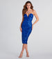 Embellished with light-catching sequins. the Adeline formal midi dress deserves to shine at banquets and fancy soirees! She features a sultry strapless neckline with a wired V-notch and padded bust for structured support. a flattering bodycon silhouette. and a sassy center back slit along the midi-length hem. The formal midi dress is designed with a captivating sequin scroll embellished pattern on lightweight mesh fabric with a stretchy knit lining. Complete the look with an emerald necklace and heels!