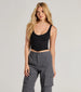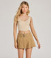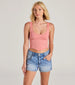 You'll always feel adorable in this basic crop top perfect for layering or styling on its own! The top is crafted from a seamless knit fabric offering plenty of stretch and comfort. It features a flattering scoop neckline. shoulder straps. and a fitted crop hem. Complete the look in denim shorts.