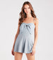This adorably glam glitter romper is perfect for creating a flirtatious aura! It features a sleeveless V-neckline. the cutest large bow accent at the bust. spaghetti straps. a fitted high waist. and flowy shorts. The textured glitter knit fabric offers a moderate stretch. Style with rhinestone heels!