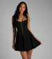 Adorably trendy. this short skater dress gives off that sweet and sassy vibe. The bustier bodice features a sweetheart neckline and zip-front design. leading to a pleated skater silhouette.