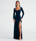 The Adriana formal velvet mermaid dress is a chic choice for an elegant affair. She features a sweetheart neckline with a draped cowl accent. long fitted sleeves. a structured corset-designed bodice. a partially open back with a lace-up design. and a fitted. floor-length. mermaid silhouette with a high side slit. Style with a glitzy necklace and earrings set.