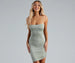 You'll be ready for the after-party in this sleek and chic bodycon mini dress. It features a sleeveless square neckline. spaghetti straps. an open back with a lace-up design. ruching down one side. and a short. curve-hugging fit. Style this dress with strappy heels.