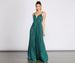 Let your presence be known as soon as you step foot in our gorgeous Aida! Crafted from woven glitter fabric. everyone will be stunned as she changes hues in the light. Her pleated floor-length skirt adds dimension and ease as you glide and dance through the night! Be sure to pick up an envelope clutch to store all your essentials!