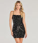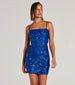 A sleeveless sequin dress boasts a square neckline and spaghetti straps that shape the lace-up back design. The bodycon mini-length fit perfectly flaunts your curves. Style with dressy heels.