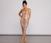 Sparkle and dazzle in our glam Alana dress! She features a plunging V neckline. adjustable spaghetti straps and light reflecting sequins adorned with pearl accents throughout. Dress is composed of a lined mesh fabric that offers a form hugging fit with a minimal stretch. Dress is lined with a form hugging smooth knit fabric. Includes a back zipper closure