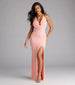 Delicate beading and sequins embellish the Alana halter formal dress giving chic polished vibes with an alluring high front slit and form-hugging silhouette!