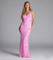 Bring the sparkle to any event in the Alandra sequin formal dress. designed with a waist-snatching corset bodice and a striking mermaid silhouette that hugs your curves.