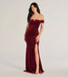 Luxe with a shimmery allure. the Alayna formal mermaid dress is designed with a glitzy glitter velvet fabric perfect for your next black-tie affair. It features an off-the-shoulder neckline with a V-cut center accent. short sleeve cuffs. ruching at the waist to accentuate your curves. and a floor-sweeping mermaid silhouette with a high-cut side slit to showcase some leg.