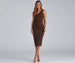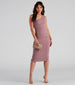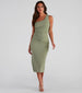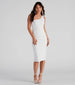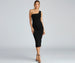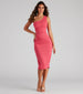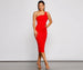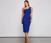 Make an elegant entrance in the Alessandra formal midi dress that captivates from the moment you enter the room. She features a sleeveless one-shoulder neckline with a single tank shoulder strap. front ruched detailing. and a fitted midi-length silhouette with a chic back slit. The dress is composed of a lined crepe fabric that offers a form-hugging fit with a moderate stretch. Complete the look with rhinestone heels and an anklet.