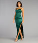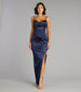 Striking in its simplicity. the Alessia satin floor-length dress features a pleated cowl neckline and a curve-hugging silhouette. A high side slit brings a sultry finish. perfect for sweeping into any evening affair with confidence.