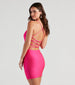 You're all about looking fabulous in the club and this mini dress is sure to deliver! It features a sleeveless V-neckline and spaghetti straps that shape the strappy open-back design. and a bodycon silhouette. The smooth knit fabric offers plenty of stretch. Complete the look in this mini-length dress with statement heels.