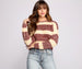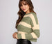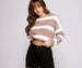 With this cozy knit sweater. it's all about the stripes. and you of course! It features a crew neckline. long dolman style sleeves. and a cropped. relaxed and comfortable fit. Pair this sweater with a faux leather skirt and over the knee boots to edge up your 'fit.