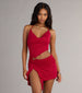 All eyes on you. always. This glitter knit bodycon mini dress shines with a daring cutout and ruffled slit that gives your party look the perfect mix of glam and bold.