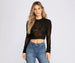 Make a spicy little entrance in this dare-to-bare crop top! Pair with your fave denim and some heels!Â