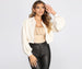 It's all in the details with this intricately woven brocade bomber! Its glitter detailing adds the perfect touch.