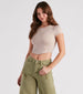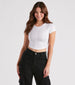 This crop top may look basic but up close you'll see its trendy details! It features cap sleeves. a crew neck. and exposed front seams along the fitted u-shaped hem on stretchy rib knit fabric. Complete the look with these top-rated bottoms.