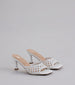 Enchant with your sweetness in these stiletto mules with a charming woven-style strap perfect for any occasion!