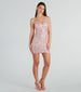 Perfect for a night out. this sequin mini dress will have you feeling beautiful and glamorous! Featuring a sweetheart neckline. padded bust. adjustable spaghetti straps. and a bodycon silhouette that hugs your curves in all the right places. The back lace-up adds a touch of allure while the faux pearl sequin beaded embellished mesh fabric sparkles and shines. Complete the look with fringe earrings.