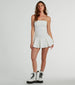 Work your styling talents in this strapless ponte romper to receive all the likes on social media! Crafted from a polished ponte knit fabric that fits like a glove. this romper features a sleek strapless neckline and form-hugging bodice that leads to a flirty pleated short-length hem. Complete the look in knee-high boots and a shoulder bag for a fashionable vibe!