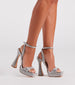 These glitzy rhinestone heels have all the right curves in all the right places! Dress up your night in these must-have heels featuring a square toe with a wide strap. a platform sole. an hourglass thin-shaped block heel. and an ankle strap with buckle closure. Complete the look with a glam choker necklace for a special occasion!