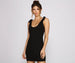 Create an alluring and chic everyday look with this must-have mini dress! It features a sleeveless bodice. a scoop neck and back. tie shoulder straps. and a mini-length. curve-hugging silhouette. Complete your outfit with heeled mules and a trendy shoulder bag.