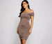 Create an alluring and chic look in this gorgeous mini dress. It features an off-the-shoulder neckline with a cross-over design. short fitted sleeves. and a mini-length. curve-hugging silhouette. The smooth knit fabric provides plenty of stretch for comfortable wear. Complete the outfit with statement earrings and a sleek clutch.